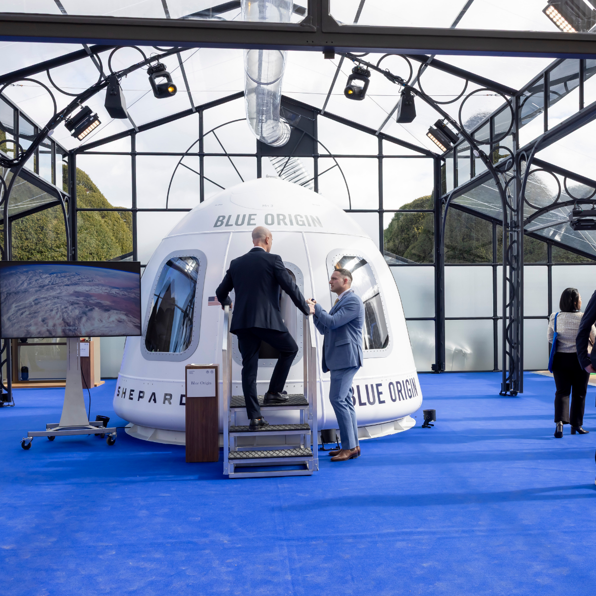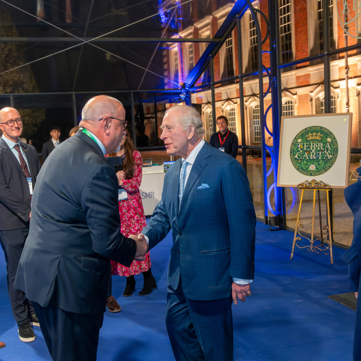 We introduced a bespoke glass structure , created by royal request and inspired by the Crystal Palace of 1851, that was built over 4 days. This enhanced both capacity and visual impact while allowing the palace itself to remain the star. Alongside the summit, a standout showcase brought innovation to life, featuring a replica of the Blue Origin New Shepard capsule alongside sustainable textiles, carbon capture models, and energy-efficient building materials.